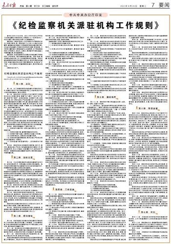 《纪检监察机关派驻机构工作规则》
