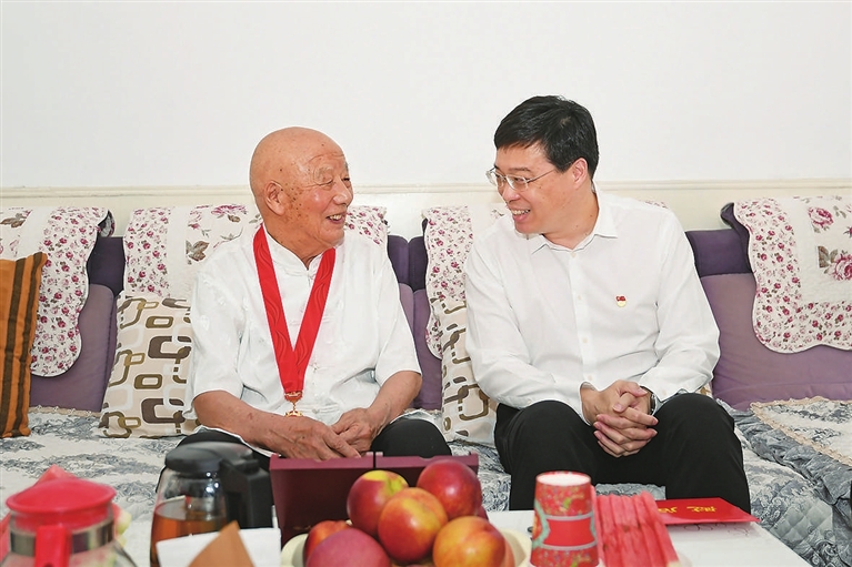 今年94岁高龄的郭高栓是1946年入党的老党员,为太原革命、建设、改革、发展奉献一生。韦韬与老人促膝交谈,详细询问身体状况和家庭情况,仔细端详一枚枚军功章,认真聆听老人追忆解放战争、抗美援朝战争中的英勇事迹和参加地方建设的峥嵘岁月,感佩他以身许国的家国情怀和克己奉公的优良家风,感谢他为党和人民事业作出的贡献。看到老人身体硬朗、思路清晰,韦韬十分欣慰,祝愿他健康长寿。他说,老党员是党和国家的宝贵财富,一辈子听党话、跟党走,心系党和人民事业,辛勤付出、默默奉献,党和人民永远都不会忘记。各级党委政府要带着感情、带着责任,在政治上尊重、思想上关心、生活上照顾、精神上关怀老党员,让他们更好地安享幸福晚年。要教育引导广大党员向优秀党员学习,弘扬伟大建党精神,深刻领会“两个确立”、坚决做到“两个维护”。