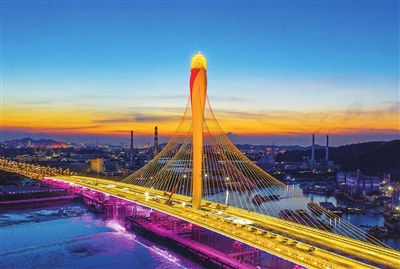 6月30日,由中铁大桥局承建的广东东莞滨海湾大桥正式通车。滨海湾大桥地处被定位为粤港澳大湾区协同发展特色平台的东莞滨海湾新区, 以东莞市花玉兰花为创意元素,上跨磨碟河入海口,为独塔扭索面斜拉桥,全长973.6米。 新华社发