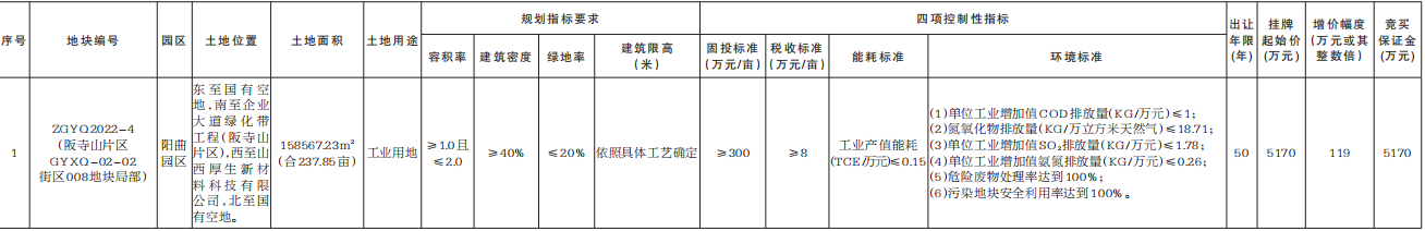 一、挂牌出让地块按照示范区“标准地”出让,基本情况、规划指标和其他控制性指标要求详见附表。