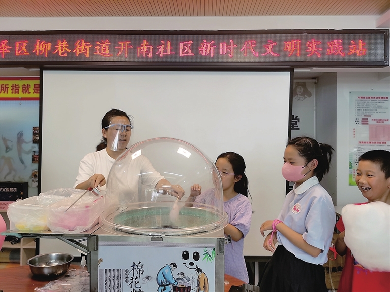 为丰富孩子们的暑期生活,加强动手动脑能力实践,7月8日,开南社区开展了非物质文化遗产进社区活动。社区邀请山西非物质文化遗产传承人教孩子们制作棉花糖。在老师的教授下,孩子们亲自动手,体验了棉花糖制作带来的欢乐,领略了非物质文化遗产的独特魅力。郭晓华 曹交红 摄