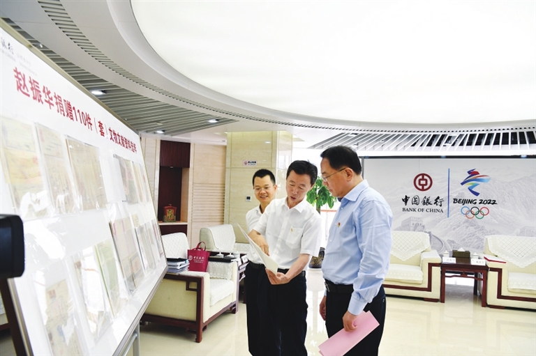 2022年7月1日是中国共产党成立101周年,也是中国银行山西省分行成立109周年纪念日,中国银行山西省分行启动了行史馆建设工作。赵振华将自己珍藏已久的“宝贝”捐献给中国银行山西省分行,以此纪念这个特殊的日子,也为行史馆建设提供了重要的行史素材。宋丽君 文/图