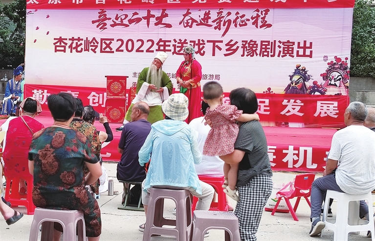 为丰富居民的业余文化生活,连日来,杏花岭区在杨家峪街道的瓦窑头村、五龙湾社区、鑫四海社区举办了“戏曲下乡”文艺演出活动,包括晋剧、豫剧、民歌等,为辖区居民送来了丰盛的文化大餐,将文化惠民、服务百姓落到实处。袁剑锋 原 茜 摄