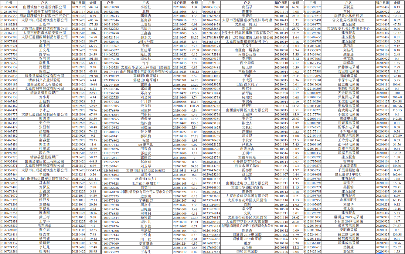 国网太原供电公司关于已办理销户未办理退费客户的公告