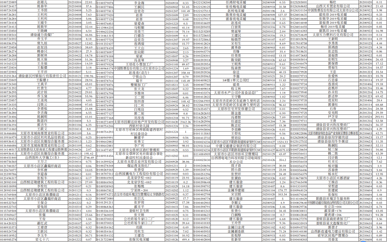 国网太原供电公司销户客户未办理退费明细表(单位:元)