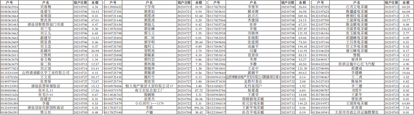 国网太原供电公司销户客户未办理退费明细表(单位:元)