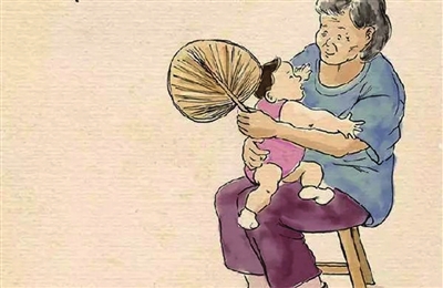那么多年过去了,只要想起外婆,总还是当年摇着蒲扇在夏日里为我扇风驱热、挥赶蚊子的模样。儿时,每当下午两三点,外婆就会烧一大壶开水,而后倒在一只圆圆的大木盆里,接着再往里面掺上冷水,不断地用手背去试,直到感觉水温恰适,才把我抱进木盆里洗澡。洗完后,外婆又把我抱到床上,从额头到脚背,统统抹上痱子粉。外婆坐在床头,用一把大大的蒲扇给我扇风,嘴里还哼着歌谣哄我入睡。她把蒲扇从这边扇到那边,再从那边扇到这边,风儿均匀而清凉。当然啦,如果我调皮,外婆还会用蒲扇拍我几下。