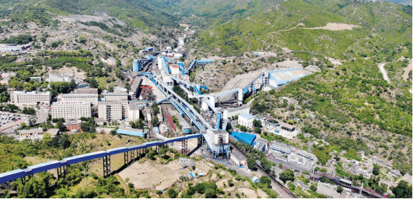 两公里多长的蓝色管道走廊蜿蜒山间,源源不断地将粉煤灰输送至山顶,注入400多米深的地下,矿山资源开发利用如此壮观。这是屯兰矿“采动覆岩离层区注浆充填技术”的实施场景,该技术可将固废巧变产业“新宠”,实现“吃灰吐煤”的双赢效益。