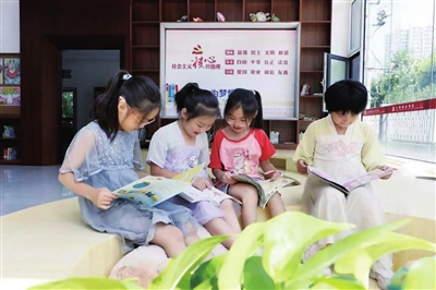 为了使城市书房更有人气,街道党工委依托少儿阅读区,将每周二和周四的下午定为阅读开放日,开设读书沙龙,专业老师指导大学生青年志愿者担任沙龙主讲,为前来阅读的孩子、中老年人等不同群体开展儿童绘本、世界名著等热门书籍的导读解读,引导大家正确读书,与他人分享读书心得,学习如何从一本书中汲取知识、智慧与力量。