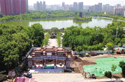 8月1日,迎泽公园北门迁改工程正在有序进行。该项目是为了配合太原地铁1号线建设,市民可通过现北门东侧50米处入口入园。李学军 牛利敏 摄