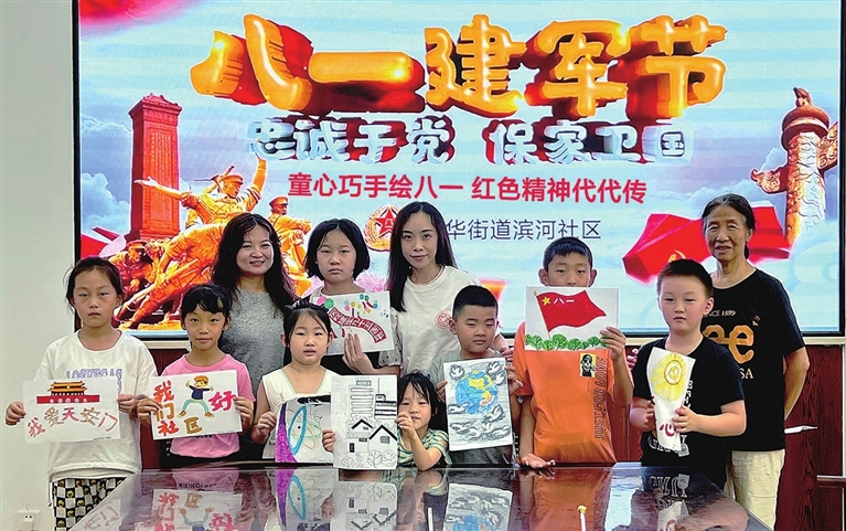 8月1日,兴华街道滨河社区开展“童心巧手绘八一 红色精神代代传”庆“八一”主题绘画活动,孩子们用画笔描绘今天的幸福生活。宋卫东 摄