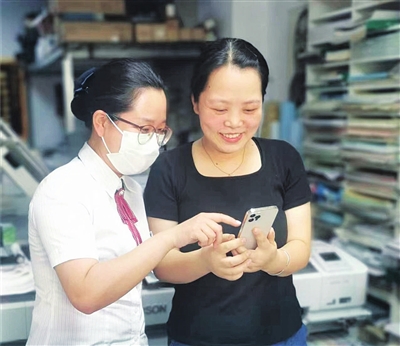 中国银行太原并州支行客户经理指导客户在手机银行上办理业务。安宏毅 摄