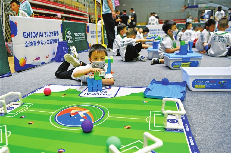 8月6日,由中国电子学会主办的2022世界机器人大赛太原城市选拔赛在山西省体育博物馆举行,共吸引了来自全省500余支参赛队伍的1000余名小选手参赛。张昊宇 摄