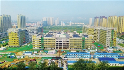 8月14日,位于摄乐街的山西省人民医院新院区建设工地,工人们正在加紧施工。新院区建有门诊急诊医技楼、综合住院楼、专科住院楼等,投入使用后将为周边居民提供高质量的医疗服务。李学军 赵世凯 摄