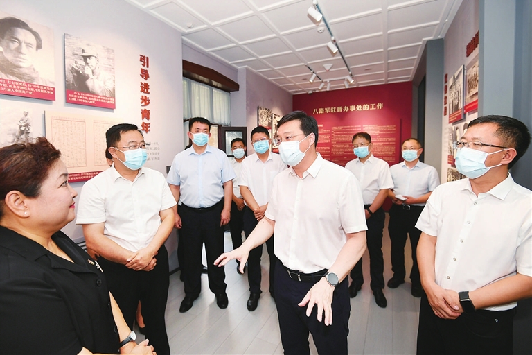 太原八路军驻晋办事处曾是中国共产党和八路军在华北地区设立的唯一公开办事机构,为八路军开赴山西、实现国共合作抗战、开辟敌后抗日根据地作出了重要贡献。韦韬走进旧址,结合详实的文字资料和珍贵的历史照片,听取办事处成立经过、斗争历史等史实介绍,观看革命文物展陈,了解旧址保护修缮、红色教育等情况,指出,太原是一座英雄的城市,有着光荣的革命历史和丰富的红色资源。要加强对革命历史遗存的修缮保护,加大对革命文物史料的收集整理,串联红色精品线路,打造红色教育基地,让红色基因代代传承。