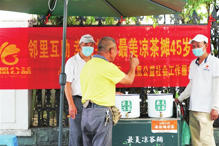 “很多人不是为了来喝口凉茶,往往是来寻找城市记忆,看看顾大伯还好不好,凉茶摊还在不在。”王秋泳说,越来越多的受益者变成参与者,“最美凉茶摊”会接力传承下去。
