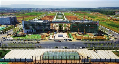 8月18日,“太忻”核心区太原科创驱动中心建筑主体已成形,施工人员正在进行玻璃幕墙安装和内部装修。该项目建成后为全国各大高校科研团队和科创企业提供一条龙全方位服务,推动我市北部新城高质量发展。