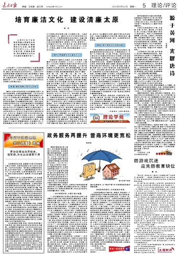 山西省第十二次党代会鲜明提出“全面建设清廉山西”的重大目标,向全省发出了坚决打赢反腐败斗争、建设山清水秀政治生态的动员令。太原市《关于全面推进清廉太原建设的实施方案》明确提出“赓续清和文化血脉,促使廉洁文化深入人心。坚持价值引领,注重典型培育,将弘扬廉洁文化作为文化建设的重要任务”。从一定程度上看,清廉文化是引领全社会清明之风的源头活水。