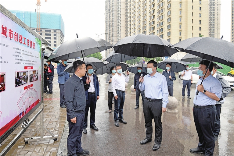 居民小区是城市的基本细胞,也是创城的基础。水西关南街7、9、11号院经过综合治理,人居环境得到改善。韦韬走进院内,察看公益宣传、卫生保洁、停车入位、绿化美化、线缆整治等情况,并走进居民楼内检查卫生环境,要求抓投入、抓整治、抓攻坚,加大空中线缆、墙面小广告等整治力度,持续完善配套设施,让创城过程成为补齐民生短板的过程。耐火小区通过实施老旧小区提质改造工程,环境面貌得到有效提升。韦韬走进小区,听取楼面整饰、道路硬化、管网线缆、便民设施等提质改造介绍,了解社区便民服务体系建设情况,要求持续引深抓党建促基层治理能力提升专项行动,发挥党建引领作用,凝聚起党员干部、网格员、志愿者、居民群众共同参与创城的强大力量。