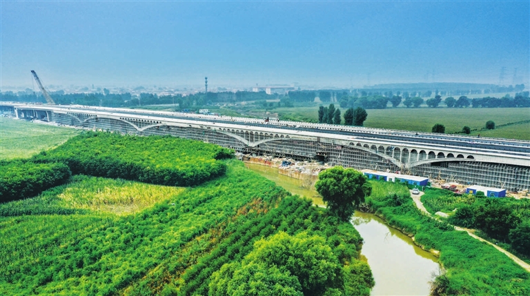 8月26日,滨河东路南延二期工程四标段潇河大桥工程在有序推进。潇河大桥主桥为连续5跨的传统拱形桥,最大跨度为100米,犹如一道彩虹横跨河上。通车后,将大大拉近市区和清徐县的距离。