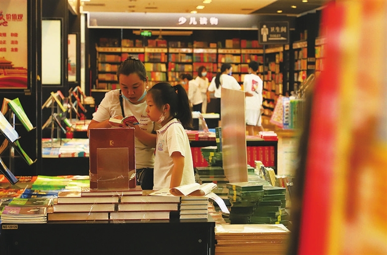 8月28日,临近开学,不少家长带孩子走进外文书店,选购新学期的学习用书。张昊宇 摄