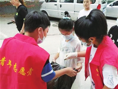 8月27日上午,南寨街道新华社区组织辖区小学生在迎新街北一巷开展义务劳动。当天,学生们分组捡拾烟头、铲除小广告等,为创造整洁美丽的生活环境尽自己一份力量。韩 睿 吕 洁 摄