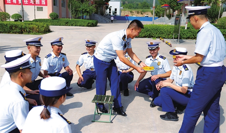 中秋将至,9月8日,山西省消防救援总队的战士们在训练之余分享月饼,感受“家”的温暖。 阴钰奇 摄