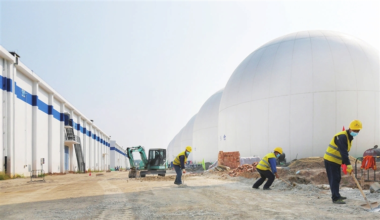 9月18日,位于阳曲县的市粮食物流产业园区(一期)项目加紧建设。该园区集粮食仓储、加工、物流、应急配送等功能于一体。目前,24座平房仓基本建成、6座球形仓正在进行结构层施工,其他配套设施建设接近尾声。赵世凯 摄