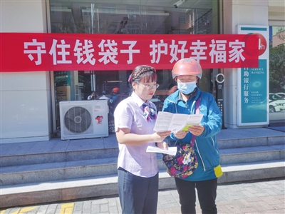 农业银行太原分行员工正在给一位市民讲解金融知识。梁晨霄 摄