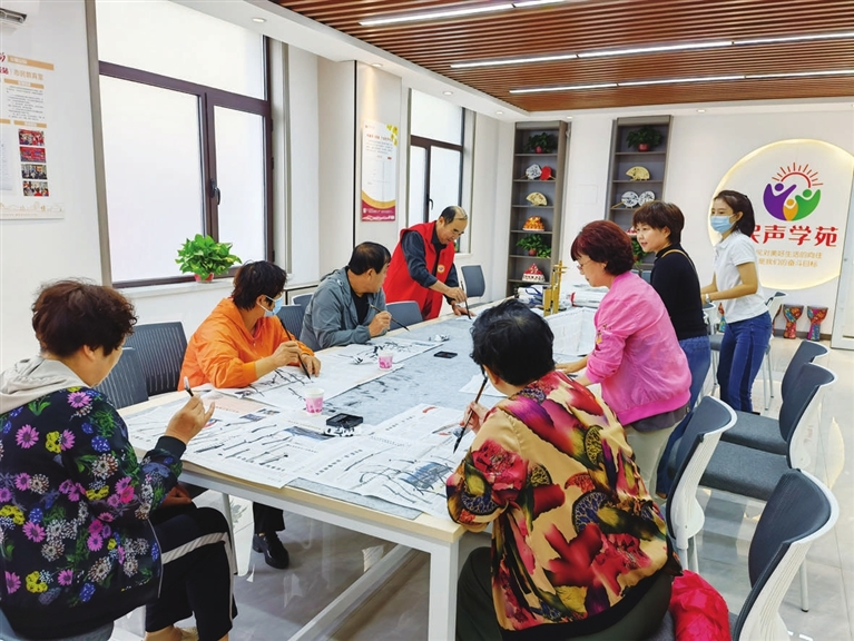 9月19日上午,耐火西巷社区居民史润莲先去社区食堂吃早饭,然后前往社区党群服务中心的城市书房看书,接着在社区党校听了艺术课,又和同在这里活动的老邻居聊天。眼看就到中午了,史润莲和老邻居一道前往社区食堂吃午饭,顺便还到“和睦塘”咨询养老服务。“这些场所都在家门口,走两步就到了,真是太方便了!”史润莲说。
