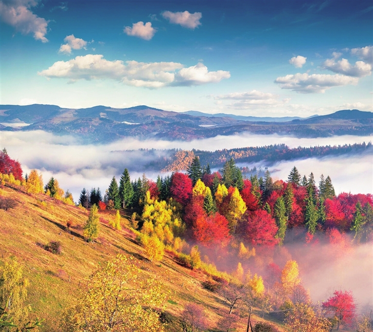 染出的秋天,是多彩的。你能在秋天的一个小角落里,轻易找出赤橙黄绿青蓝紫几种颜色,色彩的丰富让你不得不惊叹造物的神奇。低头看脚下,绿色的草地上杂花点缀其间,分外美丽。放眼望去,山的色彩也变了,原来的青山变成了一个个多彩的花圃。层林尽染,美丽的秋叶带给人们美好的视觉享受。俯仰之间,都是画。时光匆促,一定要珍惜这美好的秋色啊!