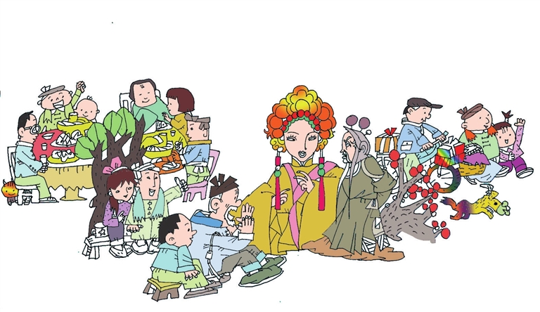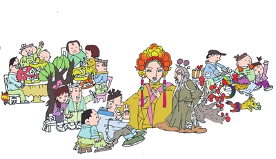 待亲戚里最上心的还是待闺女,这也是老太原人最讲究的礼数。那时,囿于世俗偏见,嫁出去的闺女回娘家并非易事,因为出嫁之后的女儿在婆家要操持家务、伺候公婆,还要应付各种妯娌姑嫂关系,甚是辛苦,加之交通不便,一年里头也回不了几次娘家,所以过唱成了回娘家最好的由头。女儿一家子回来,一则可以和娘家人团聚,二则女儿可以无拘无束地看戏串门,悠闲地小住两三天,歇歇身子。过唱也是乡村妇女每年的一个“妇女节”。