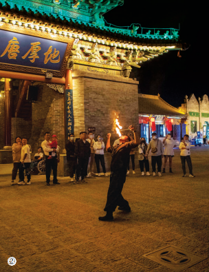 图②:演员在城内进行民俗表演。