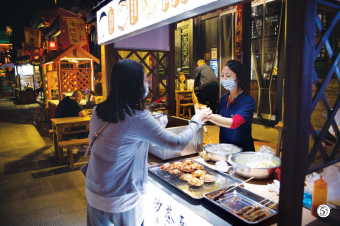 图⑤:游客在城内购买小吃。(图片均为9月30日摄)