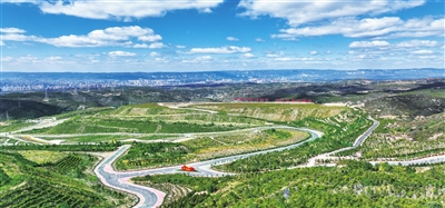 10月10日,杏花岭区矿山修复生态园内,漫山的绿植在蓝天白云的映衬下更加郁郁葱葱,尽显我市“创森”活力。