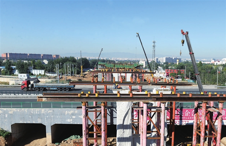 10月12日,龙城大街打通工程现场,建设者加紧施工。目前,跨二广高速桥下部结构已全部完工,正在进行上部结构的施工。建成后,将缓解太榆路交通压力,使太原、晋中两地的通行更便捷。李学军 牛利敏 摄