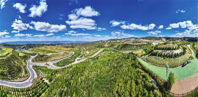 2022年太原市创建国家森林城市高标准营造林示范工程。杏花岭区采用生态经济型修复与生态景观型修复的融合思路,突出树种多样性、景观多样化和功能多元化;创新“卸荷降坡、修筑马道、喷播灌草、固土保水”的边坡治理以及“客土覆盖、科学整地、林草融合、景观异质”的生态修复技术路线,保证了工程质量和景观效果的双提升。
