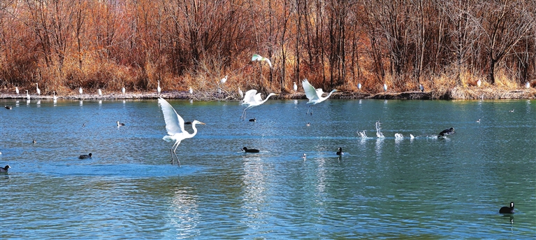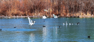 秋高气爽的天气十分适宜出行,在晋阳桥北面的“汾河晚渡”旁,三三两两的市民结伴而来,有的甚至一直待到傍晚,欣赏落日美景。如今,沿着汾河走一趟,能看到不同类型的人工湿地,还能欣赏到白鹭、黑鹳、苍鹭等珍稀鸟类。汾河水生态环境的沧桑巨变不仅撑起了并州大地的一城秀色,还给生活在汾水之滨的太原人带来更多幸福。