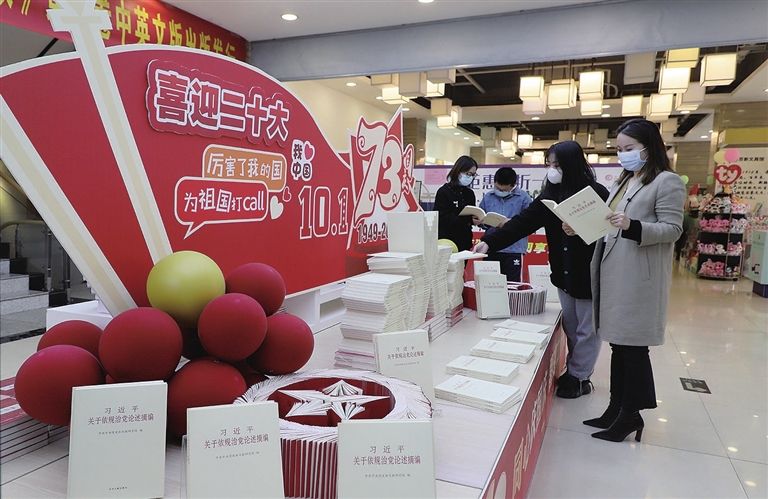 10月13日,山西图书大厦内,《习近平关于依规治党论述摘编》吸引了不少读者前来阅读、选购。张昊宇 摄