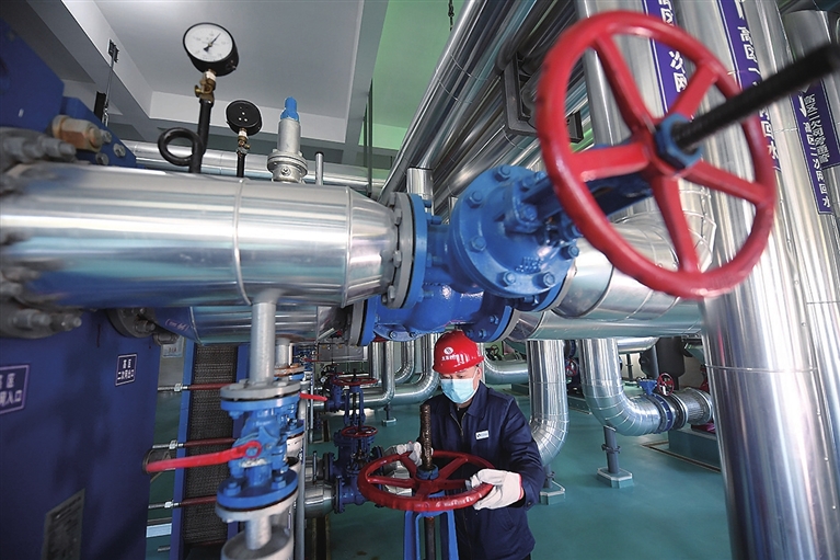 十月十九日,省城和平北路翔建热力站,太原热力集团万柏林供热分公司的工作人员正在巡检供热设备,做好今冬供热准备工作。邓寅明 摄