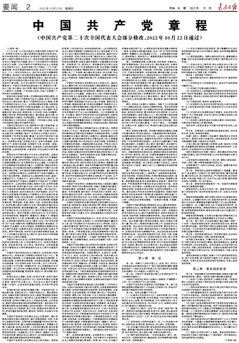 就党的二十大通过的《中国共产党章程(修正案)》答记者问