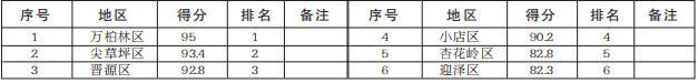 现将检查排名进行通报,请各城区对照结果认真整改,建立常态长效措施,督促各责任单位尽快完成整改落实。