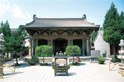 不二寺大殿,名为三圣殿,亦称大雄宝殿。在搬迁过程中,从大殿明间脊檩发现“大汉乾祐九年丙辰岁建造都维那宋会徐德”“咸平六年庚子岁重建”“大明昌六年岁次乙卯八月癸丑月十七日重建法堂记”三条墨笔题记,结合大殿木构架与制作手法特征,判定大殿始建于北汉乾祐九年(956),北宋咸平六年(1003)重建,现存为金明昌六年(1195)维修后面貌。金代维修时,内部保持原样,外部改为金代建筑风格。
