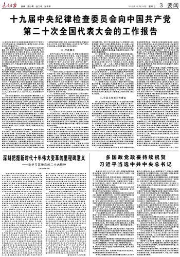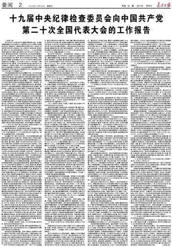 十九届中央纪律检查委员会向中国共产党第二十次全国代表大会的工作报告