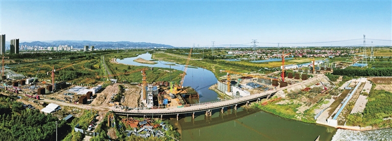 10月31日,建设中的清徐县汾河文源大桥雏形初现。文源大桥是清徐县首座大型景观桥梁,建成后将成为汾河两岸新的便捷通道。米国伟 摄