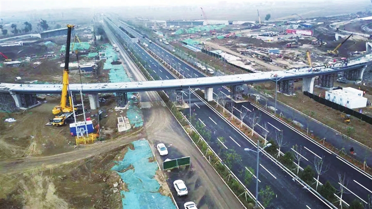 在现场,需要同时控制成桥的平面曲线与竖向曲线,才能确保匝道桥梁线型控制精度。为此,项目施工团队严格按照施工方案进行吊装,通过前期合理策划、过程积极监控,有力克服临近冬期焊接难度高以及工期紧张等难题,高效高质完成了匝道桥合龙施工任务。