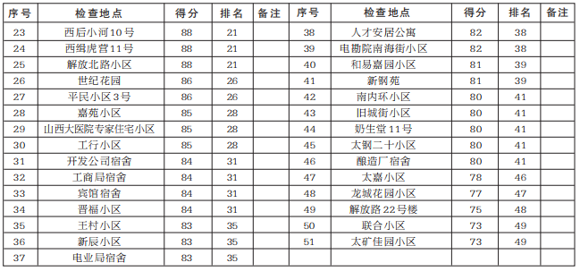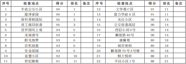市领导批示“中央文明办实地测评临近,请各县(市、区)、市创城办高度重视,在秩序维护、环境整治、氛围营造和紧盯测评重点上再加劲,以最佳状态迎测。”现将检查排名进行通报,请各城区对照结果认真整改,建立常态长效措施,督促各责任单位切实履行相关责任和义务。