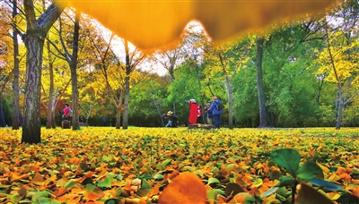 深秋漫步在龙潭公园,赏落叶金黄,观湖水晶莹,看叠翠流金,游目骋怀,拥抱自然,大抵是秋天里最美的享受之一。