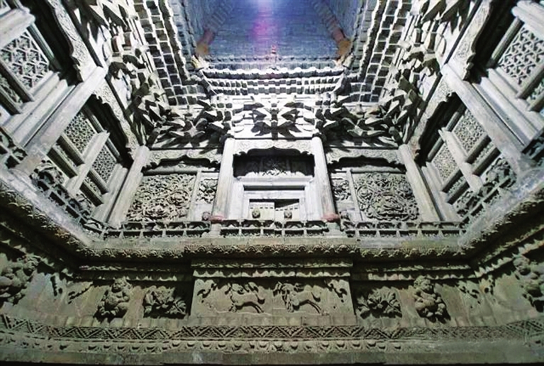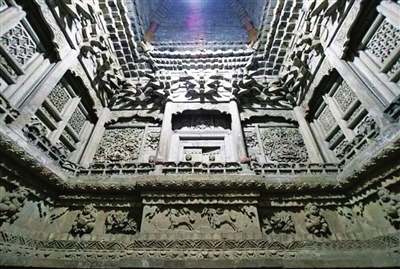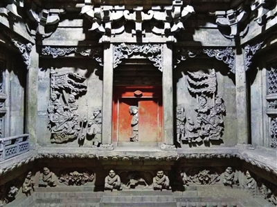 墓室雕刻中有很多的人物大多是表现墓主人生活的。如“开芳宴”中,墓主人夫妇或一起看戏听曲,或在花丛间小桌旁对酌,桌上盛放着各种美食美器,桌下有装在梅瓶中的佳酿。又如著名墓葬题材“妇人半掩门”,一扇镂雕精美的大门半开半掩,妇人从门缝探出身首向外张望,这不出不入、半入半出的一瞬间,永远凝固在青砖上,令人遐想。
