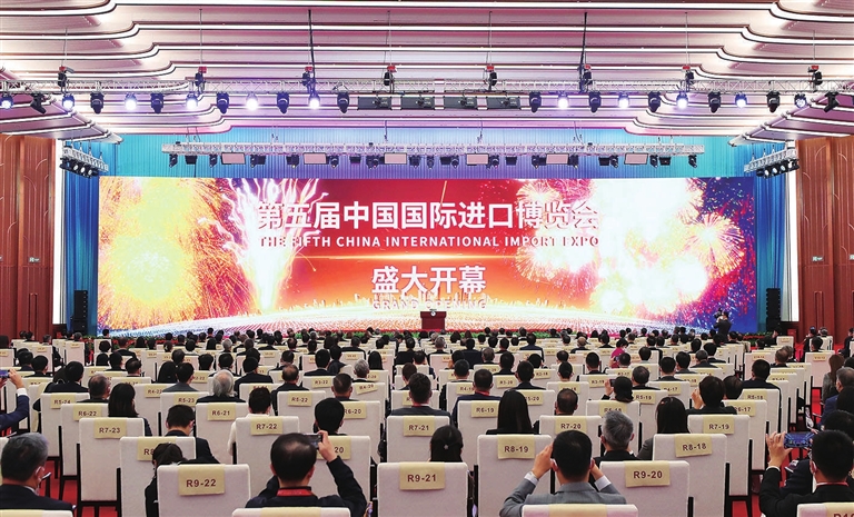 “5年前,我宣布举办进博会,就是要扩大开放,让中国大市场成为世界大机遇。现在,进博会已经成为中国构建新发展格局的窗口、推动高水平开放的平台、全球共享的国际公共产品。”